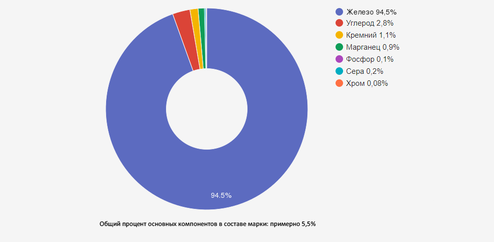 | Железо (Fe) | остальное (не менее 95,0) | Основа сплава |